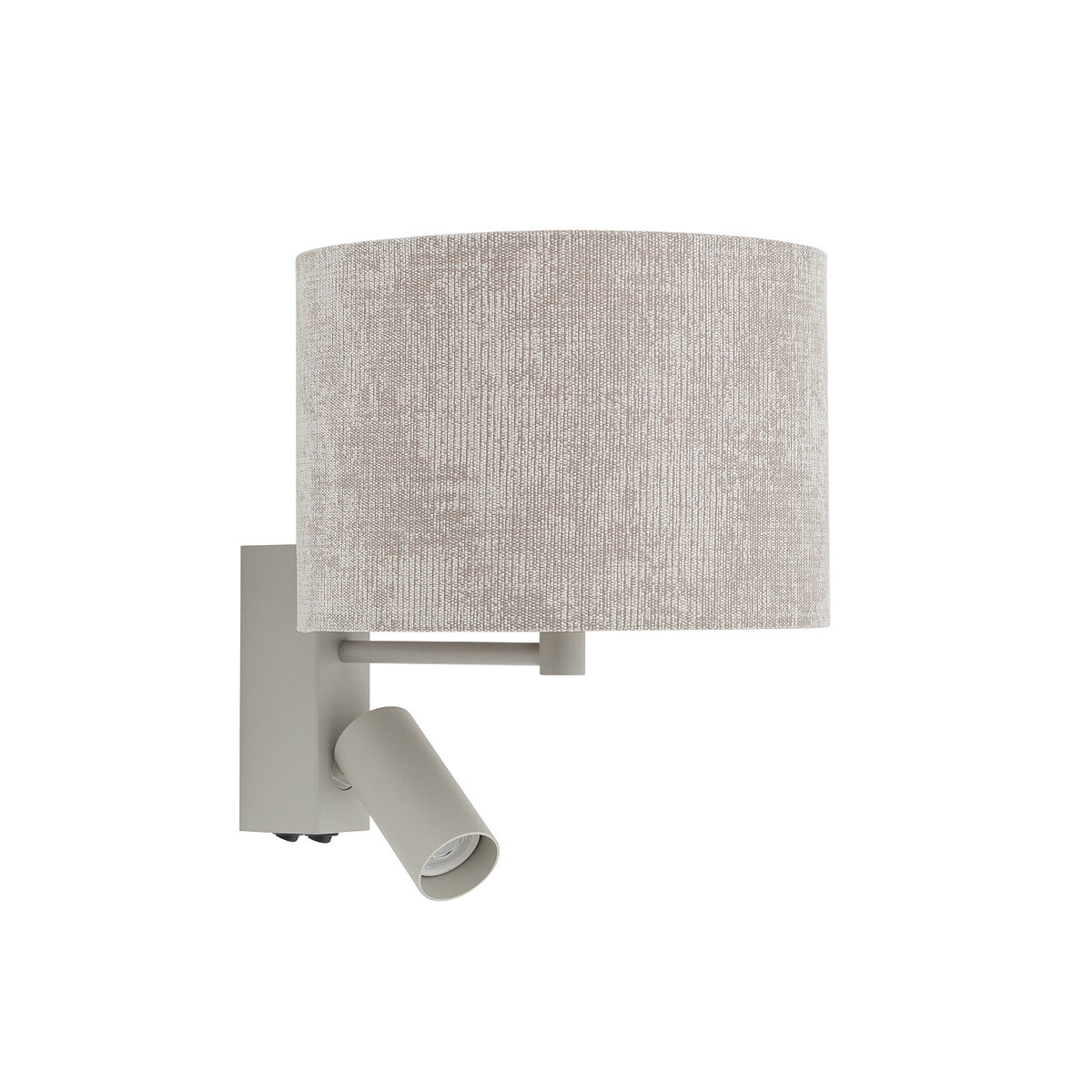 Eleganță naturală și tonuri luminoase definesc această variantă a aplicei FABER. Abajurul textil bej completează armonios structura metalică gri/bej, aducând un plus de căldură și relaxare în spațiu.