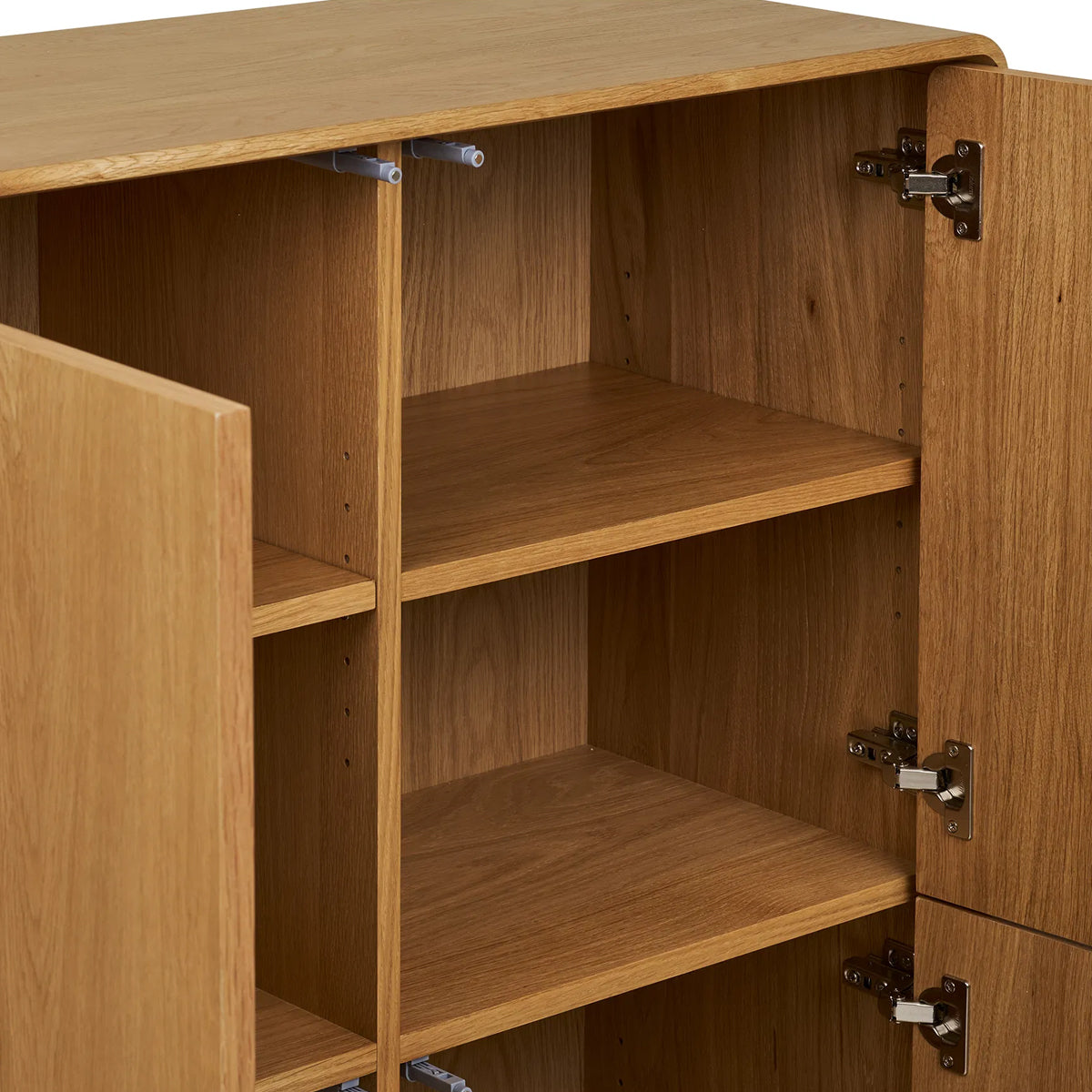 Cele patru uși cu deschidere simplă oferă spațiu generos de depozitare, păstrând în același timp un aspect minimalist și modern.
