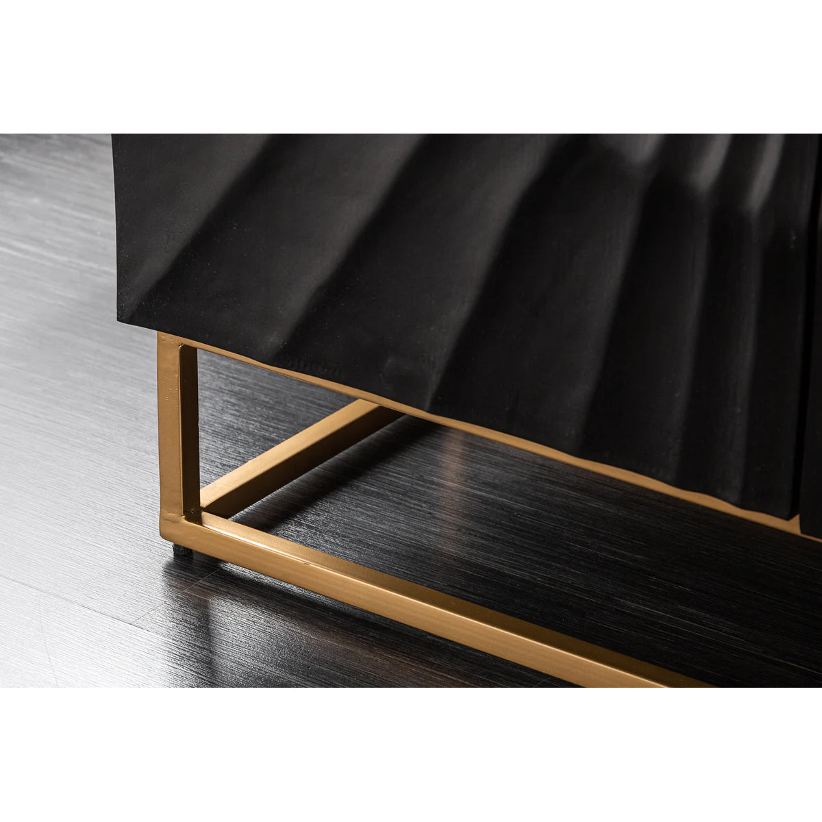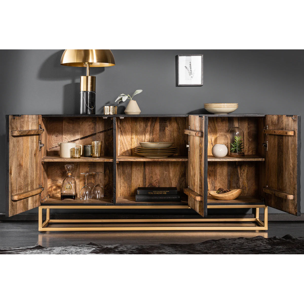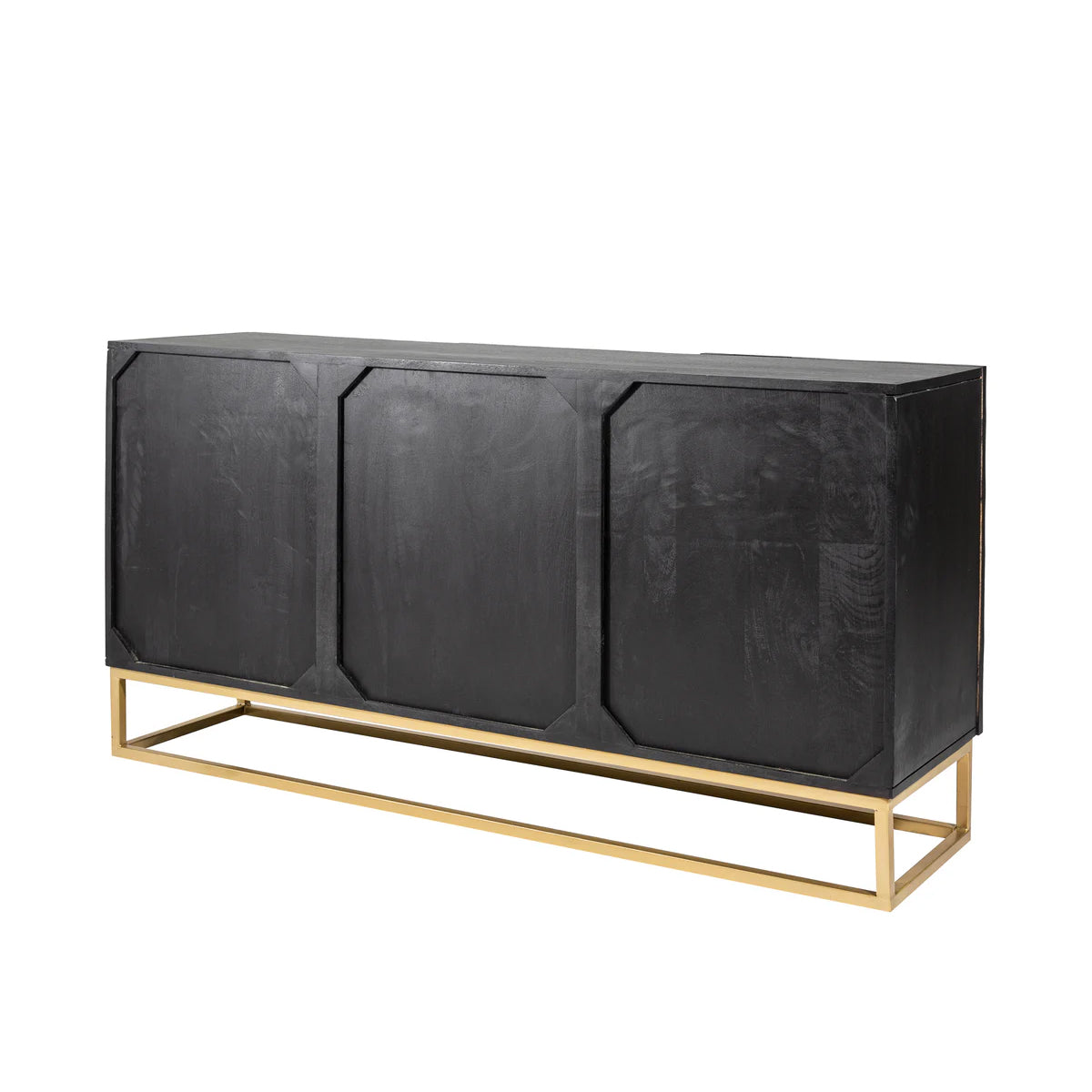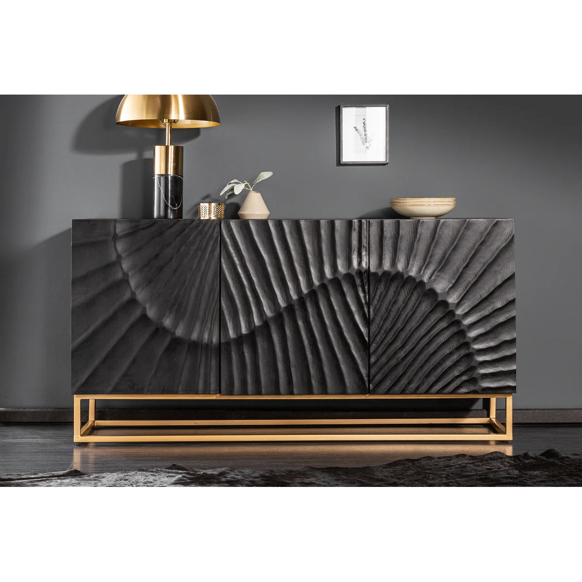 Cu o prezență mai compactă, dar la fel de sculpturală, bufetul DUNE în versiunea cu 3 uși se remarcă prin textura sa vibrantă și finisajul profund al lemnului de mango.