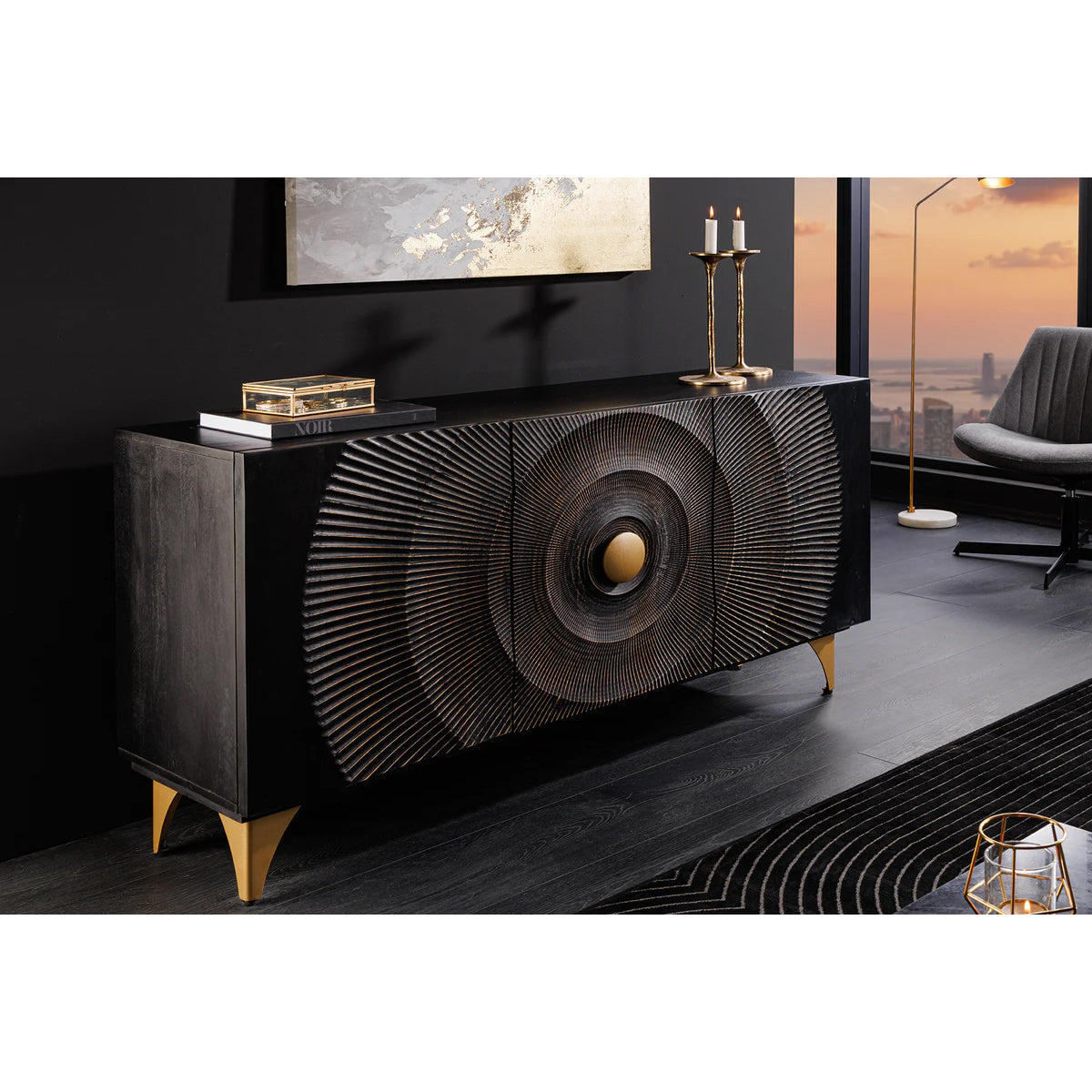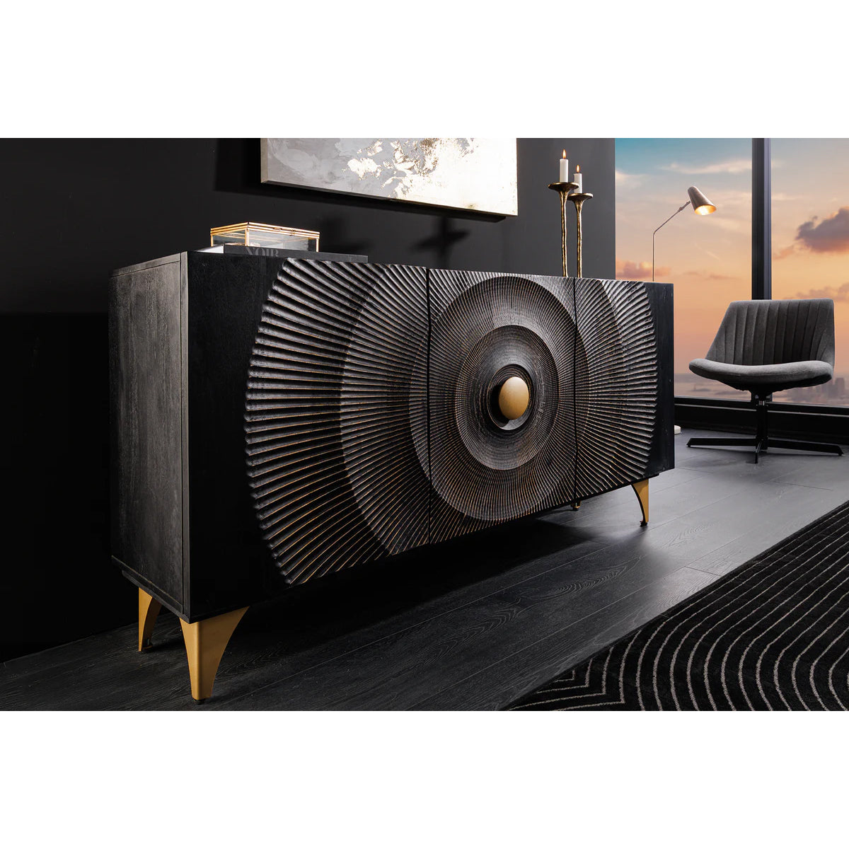 Bufetul ECLIPSE este un manifest pentru echilibru și simetrie. Cu fronturile radiale ce par să se extindă dintr-un punct de lumină central, bufetul aduce în decor un dinamism controlat.