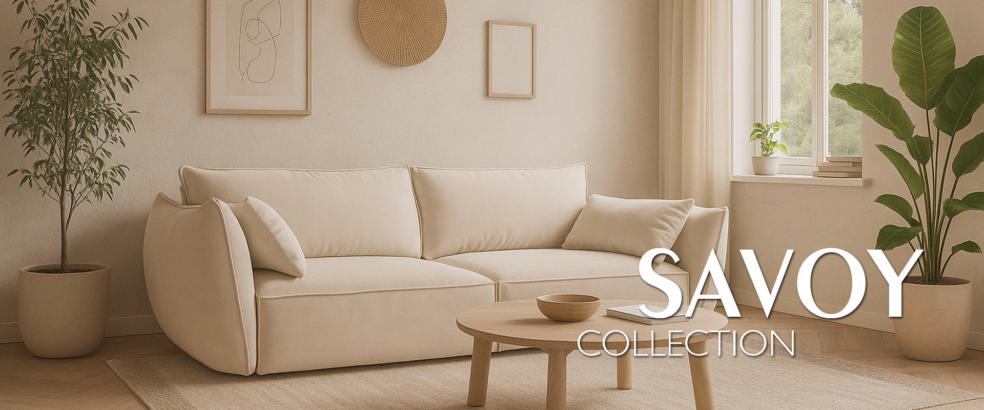 Canapeaua Savoy preia liniile curate și atmosfera calmă a colecției, oferind un loc de repaus generos, dar subtil. Volumetria sa moale, cu brațe ample și spătar bine proporționat, transmite o senzație de siguranță și confort fără ostentație. Tapițeria disponibilă într-o paletă rafinată de catifea sau chenille accentuează caracterul ei tactil și primitor. O piesă care susține filosofia slow living, ideală pentru interioare nordice sau contemporane, unde simplitatea este esența stilului.