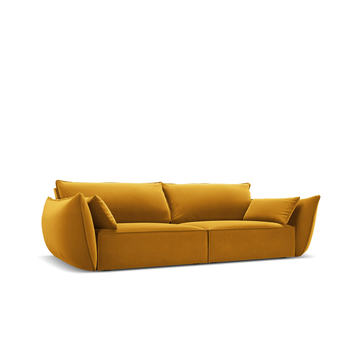Tapițeria disponibilă într-o paletă rafinată de catifea sau chenilă accentuează caracterul ei tactil și primitor.