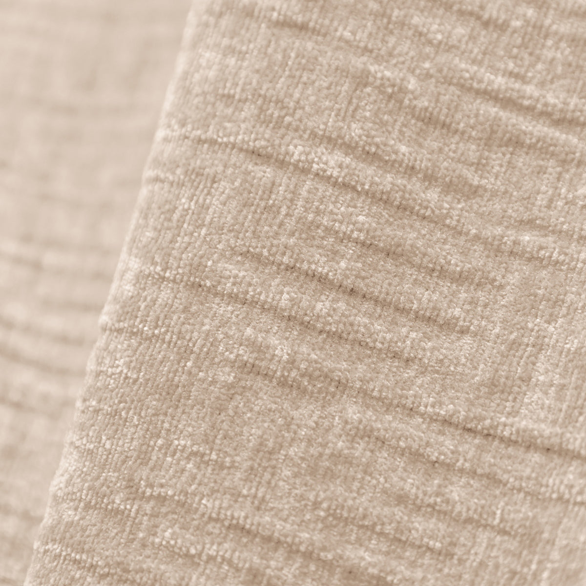 Țesătură de chenilă cu o textură interesantă și efect tridimensional. Firele fine au înălțimi variabile, formând un model convex. Modelul seamănă cu cel al catifelei reiate (cord), dar dungile sunt mai fine și mult mai neregulate. Materialul este plăcut la atingere, moale și are un aspect extrem de confortabil.
