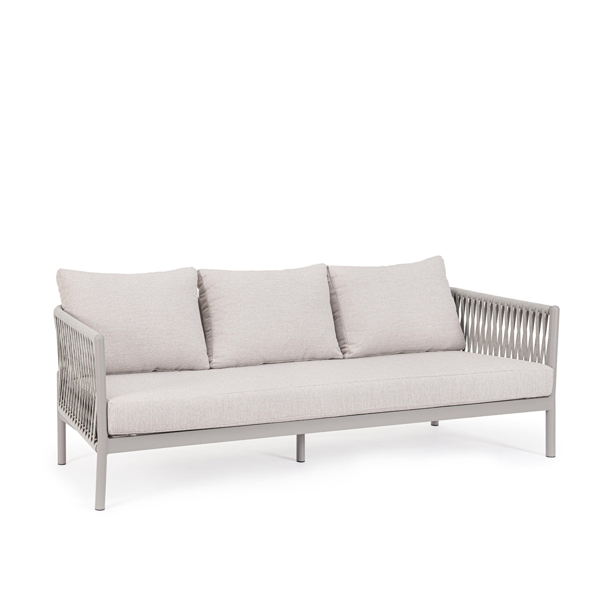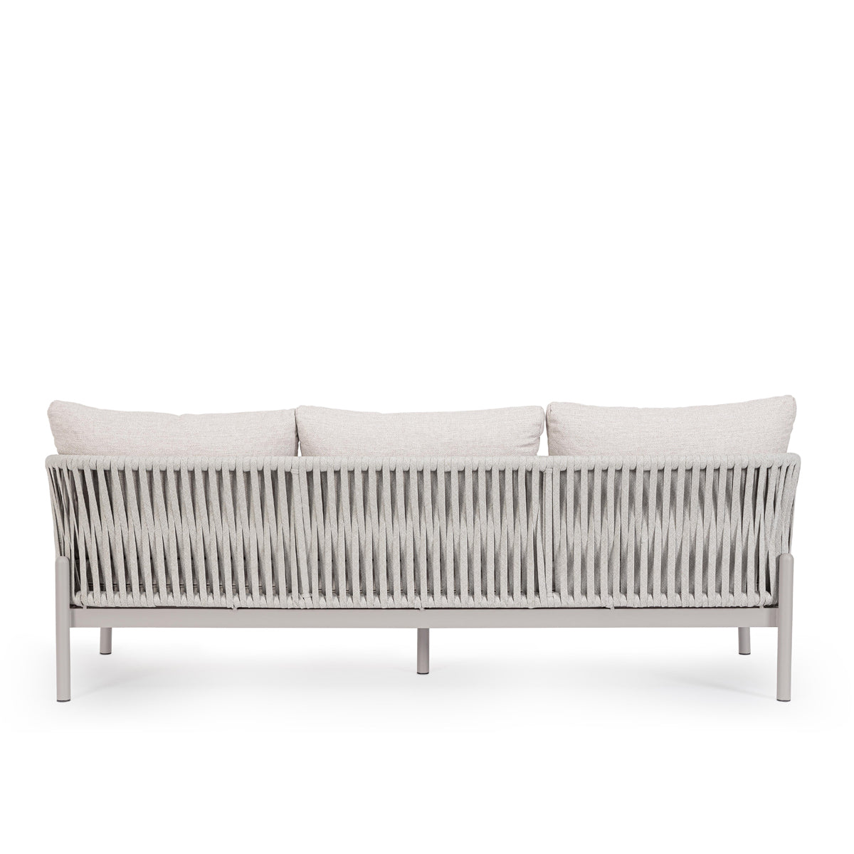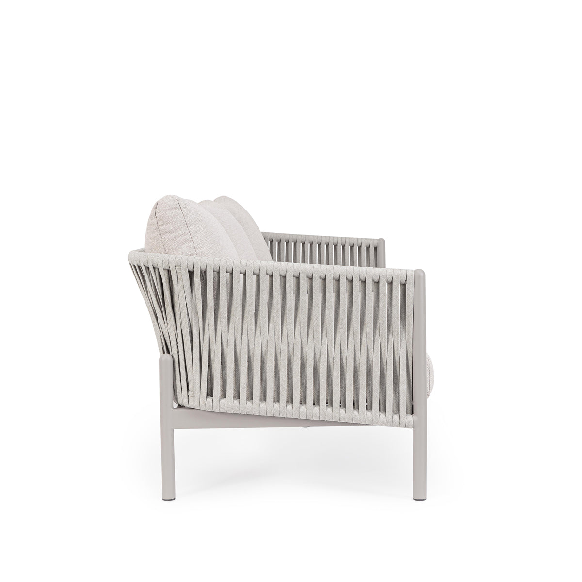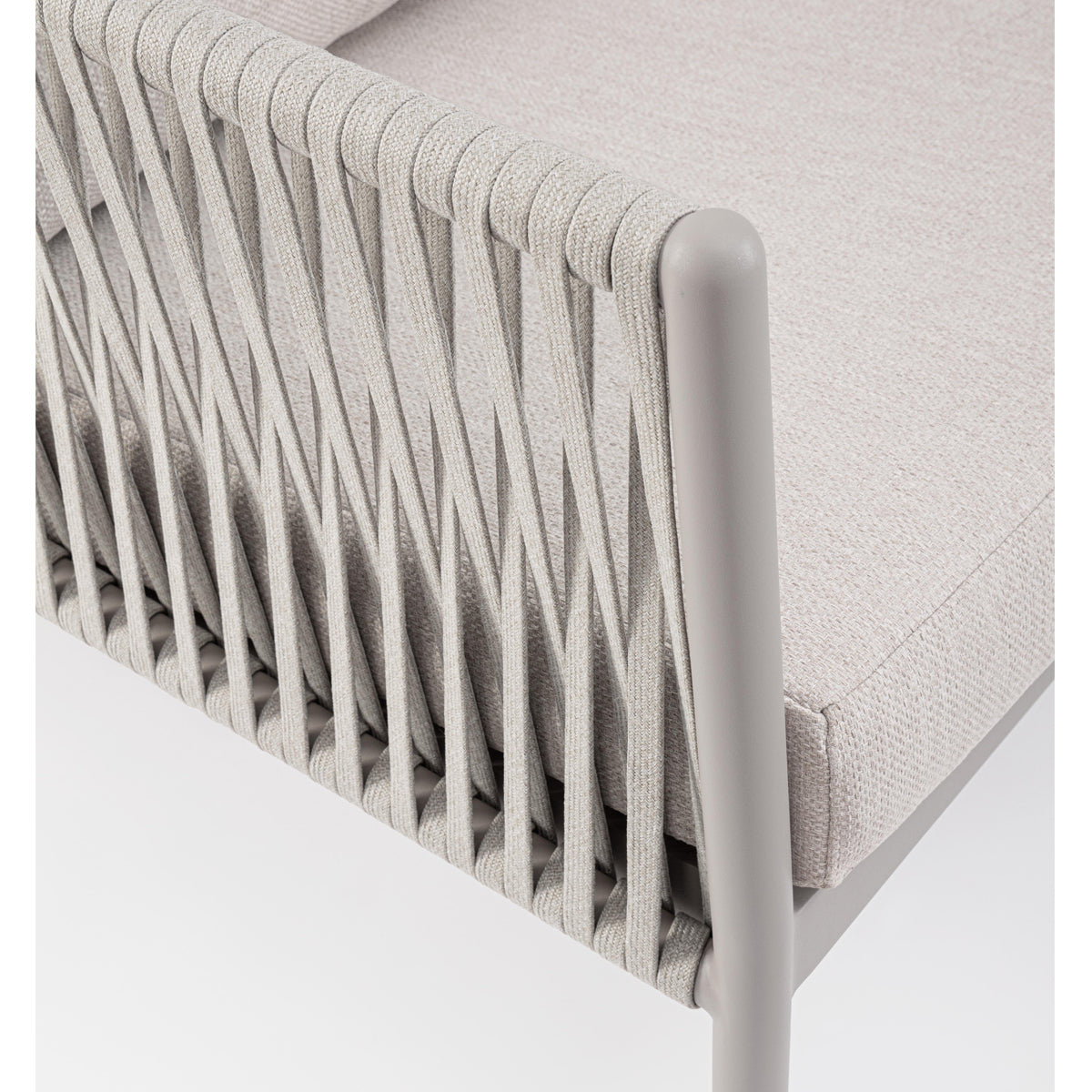 Canapea cu structură din aluminiu şi impletitură din sfoară in noanţe de bej.