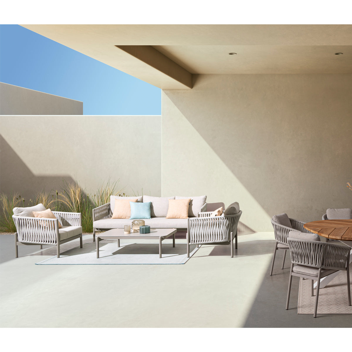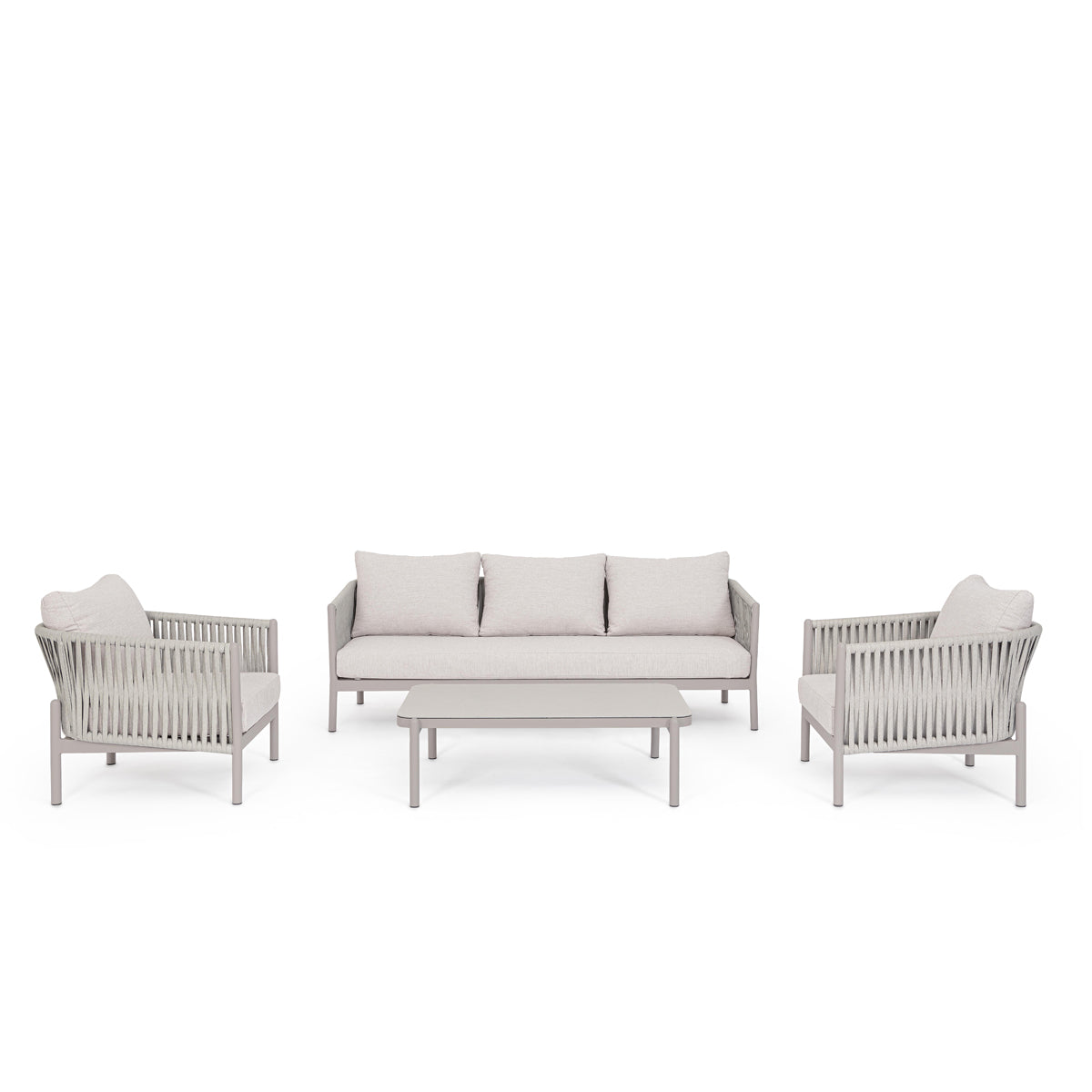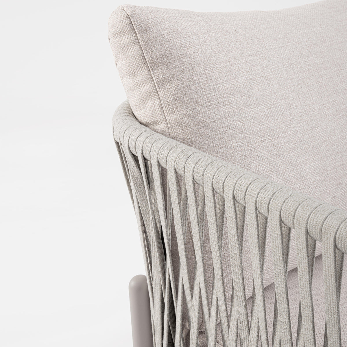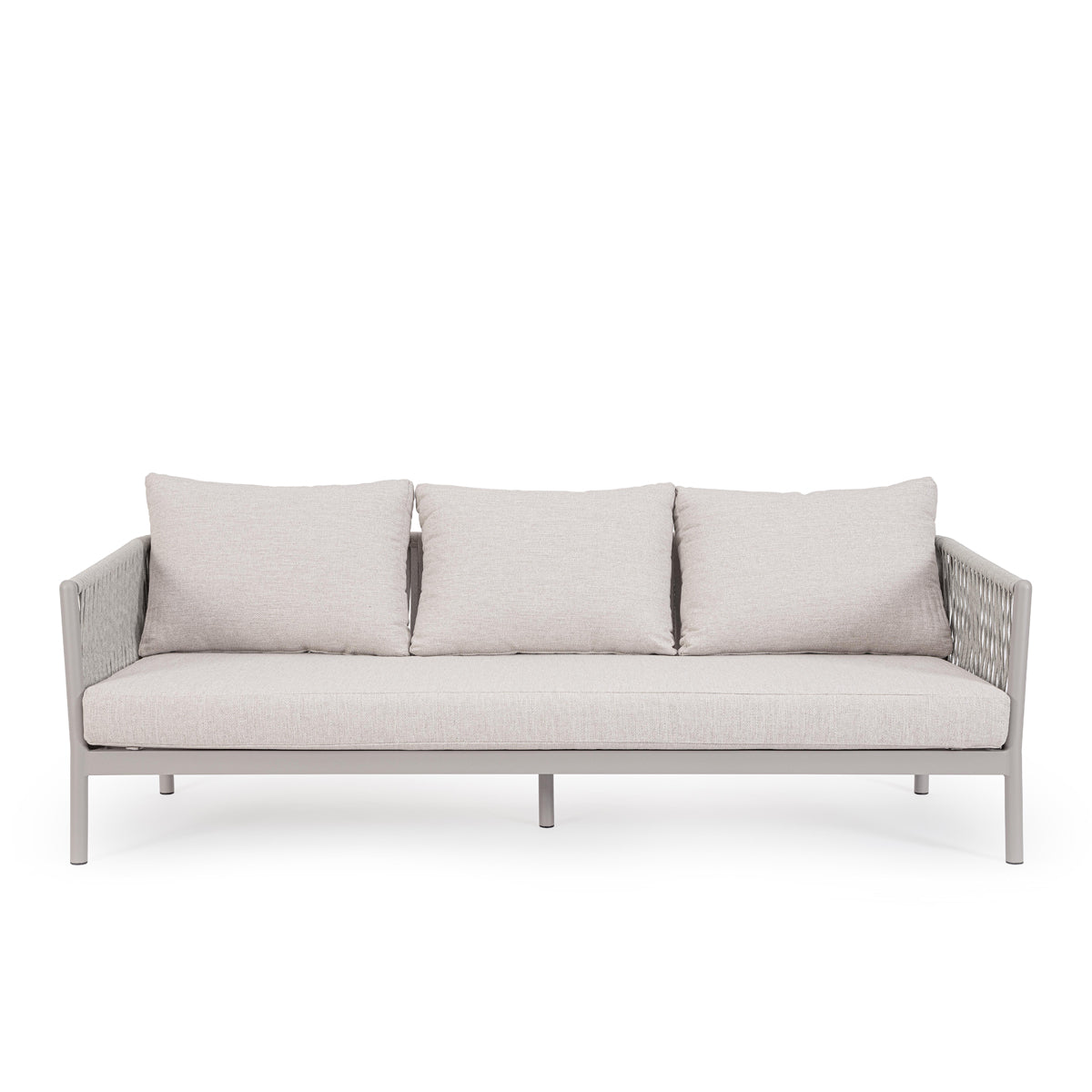 Canapea cu structură din aluminiu şi impletitură din sfoară in noanţe de bej.