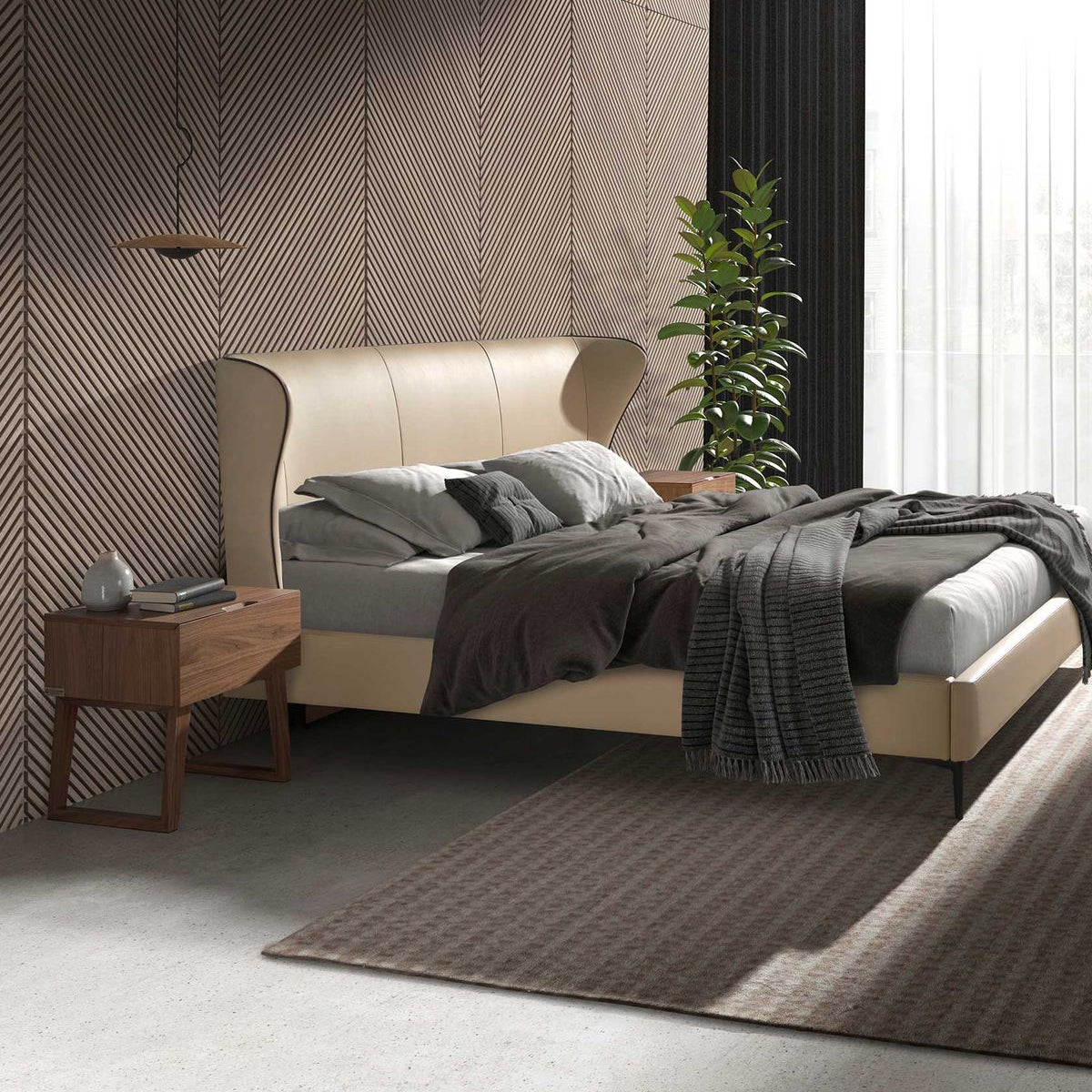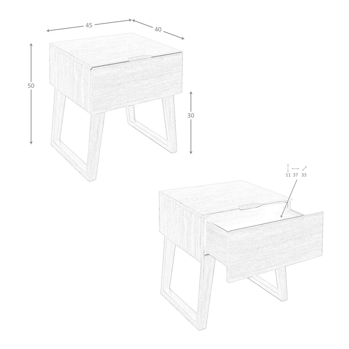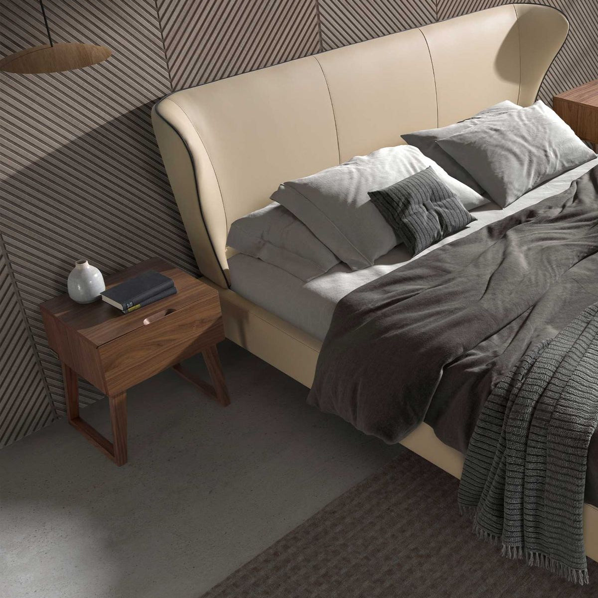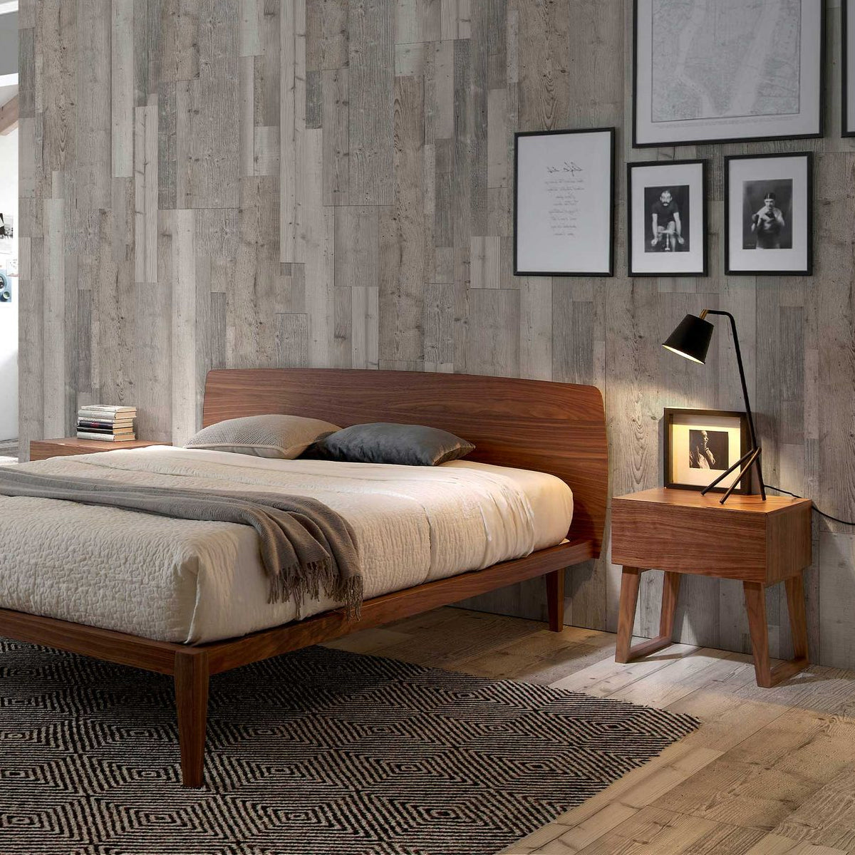 Noptieră cu design modern, cu structură din lemn furniruit cu nuc natural și picioare din lemn furniruite cu nuc natural.