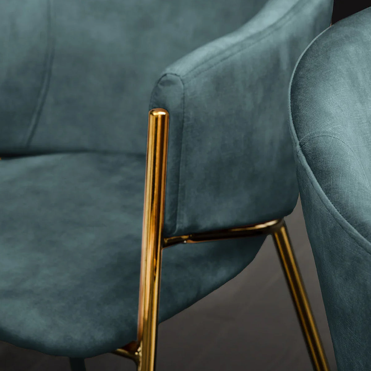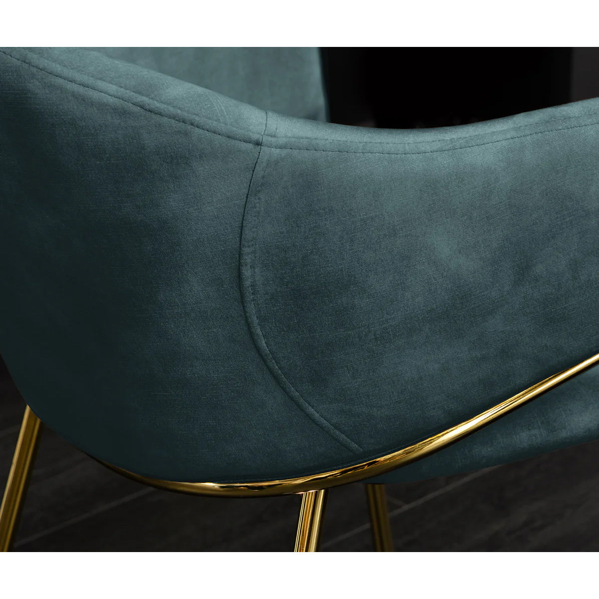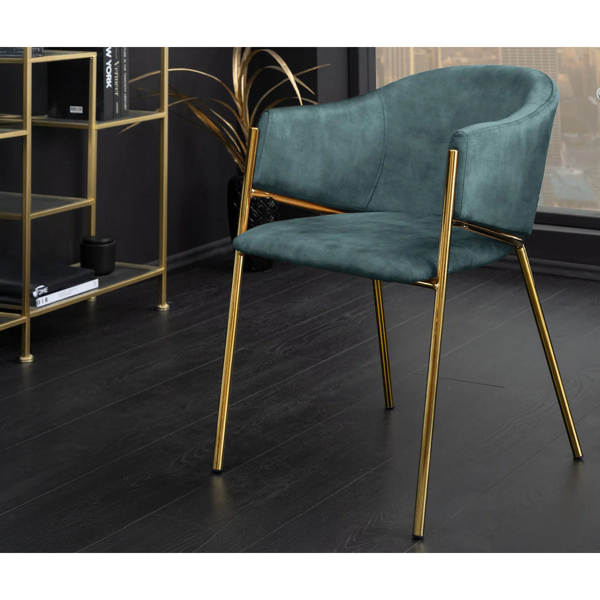 Scaunul MORRA Verde Petrol aduce profunzime și stil, prin combinația de catifea luxuriantă într-o nuanță intensă de verde-petrol și picioare aurii mate.