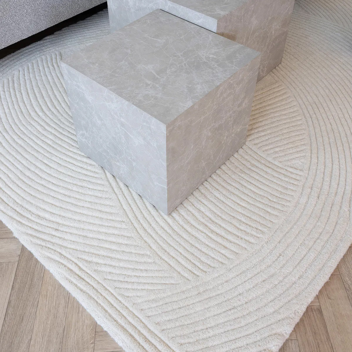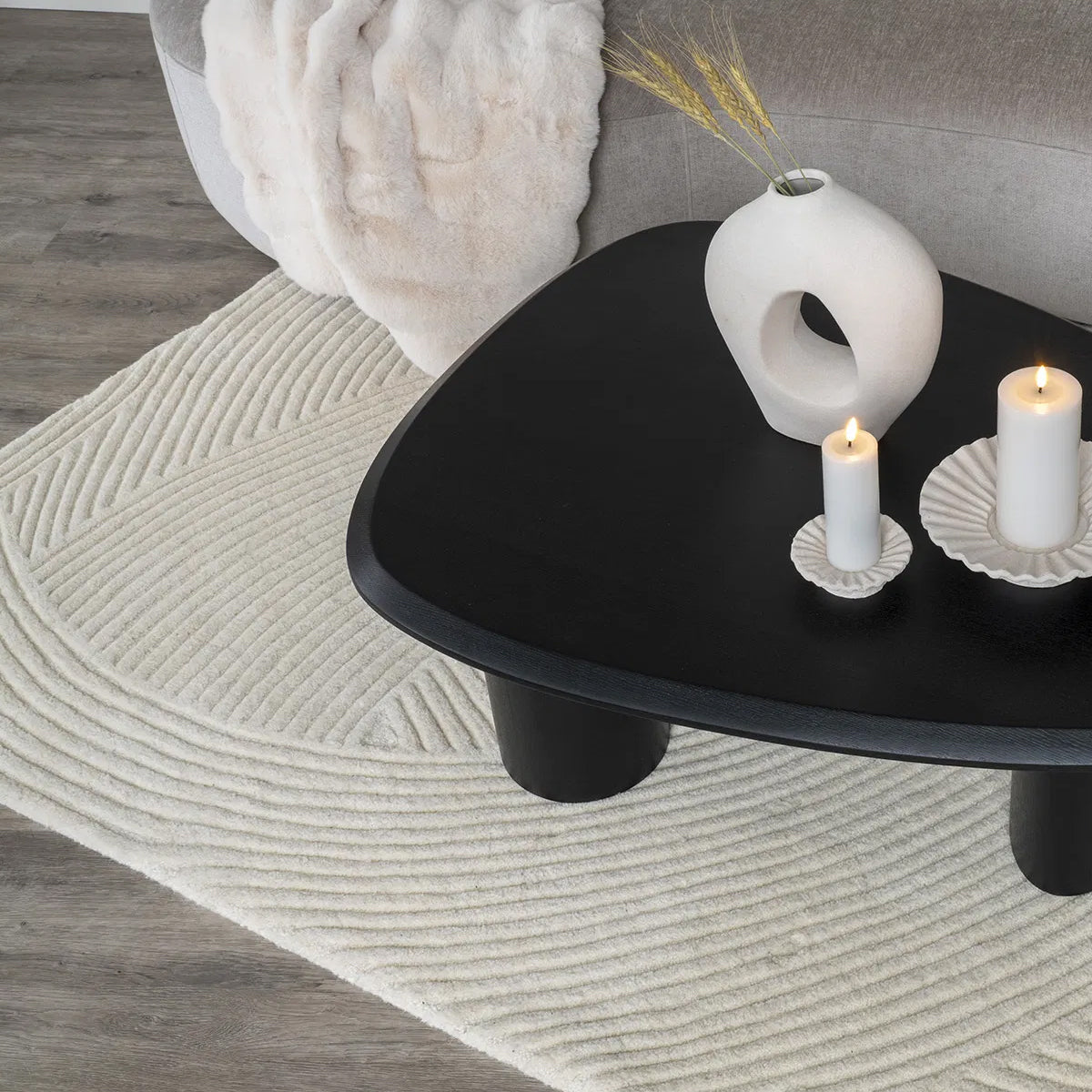 Covor alb din lână 100%.
