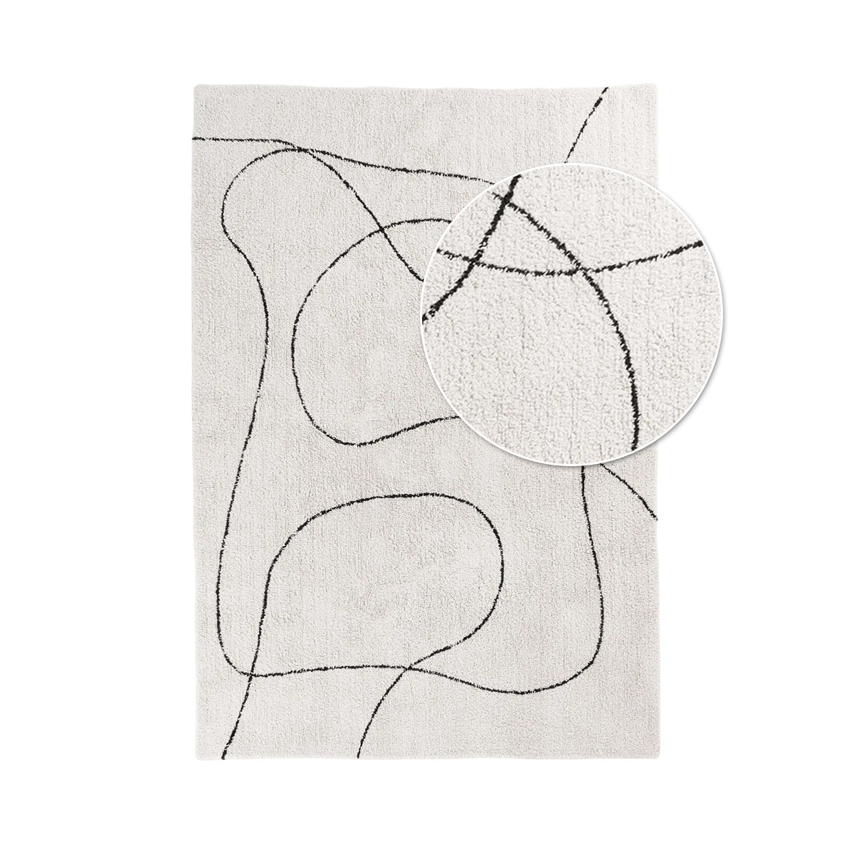 Covor din bumbac alb cu dungi fine negre.