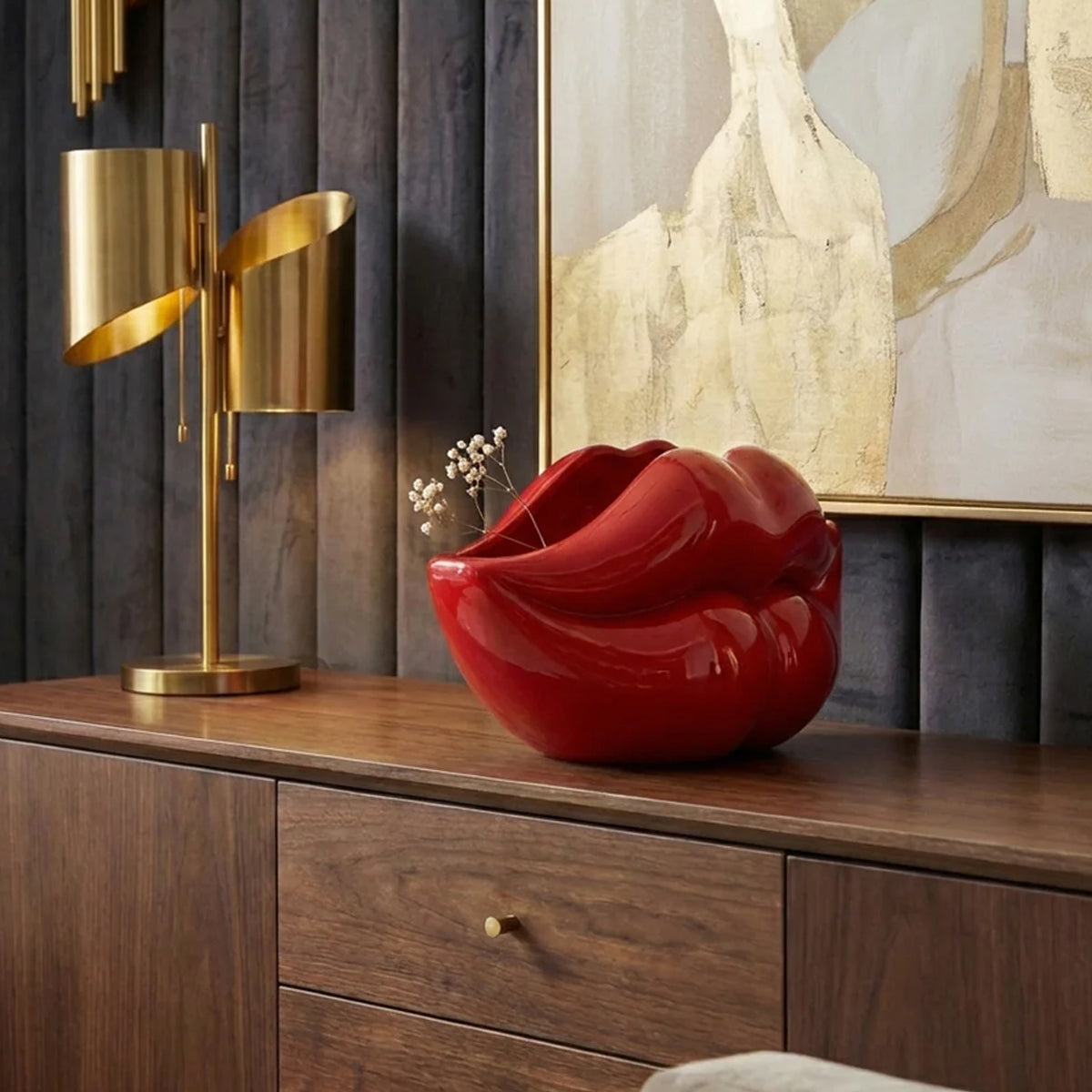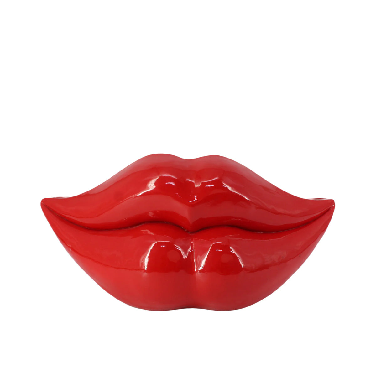 Obiect decorativ cu design sculptural, realizat sub forma unor buze stilizate, cu finisaj lucios într-o nuanță intensă de roșu. Volumul generos și forma curbată transformă piesa într-un accent vizual puternic, cu impact imediat asupra spațiului în care este amplasată.