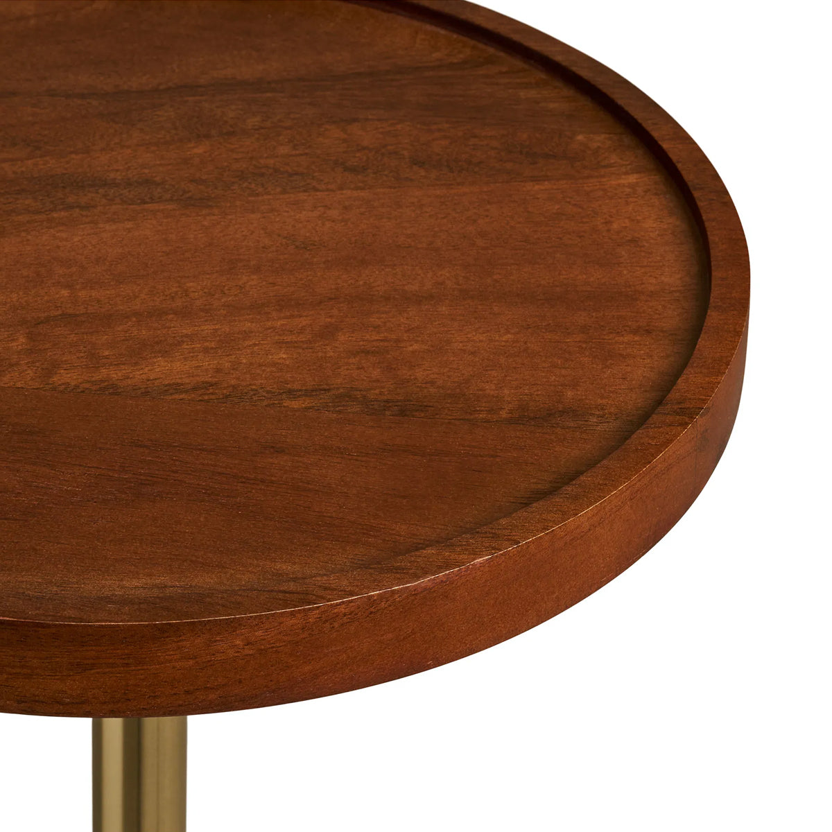 Blatul din lemn de mango, cu finisaj cald și natural, aduce echilibru vizual și o notă tactilă plăcută, în timp ce tija subțire din oțel cu finisaj alamă creează o legătură elegantă între planuri.