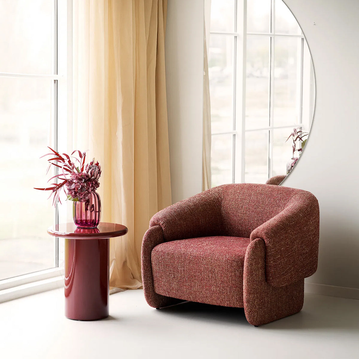 Masuţă laterală din MDF, culoare roşu bordeaux cu finisaj lucios.