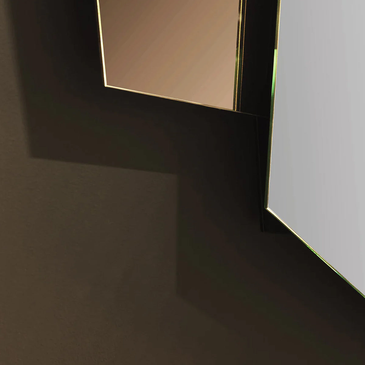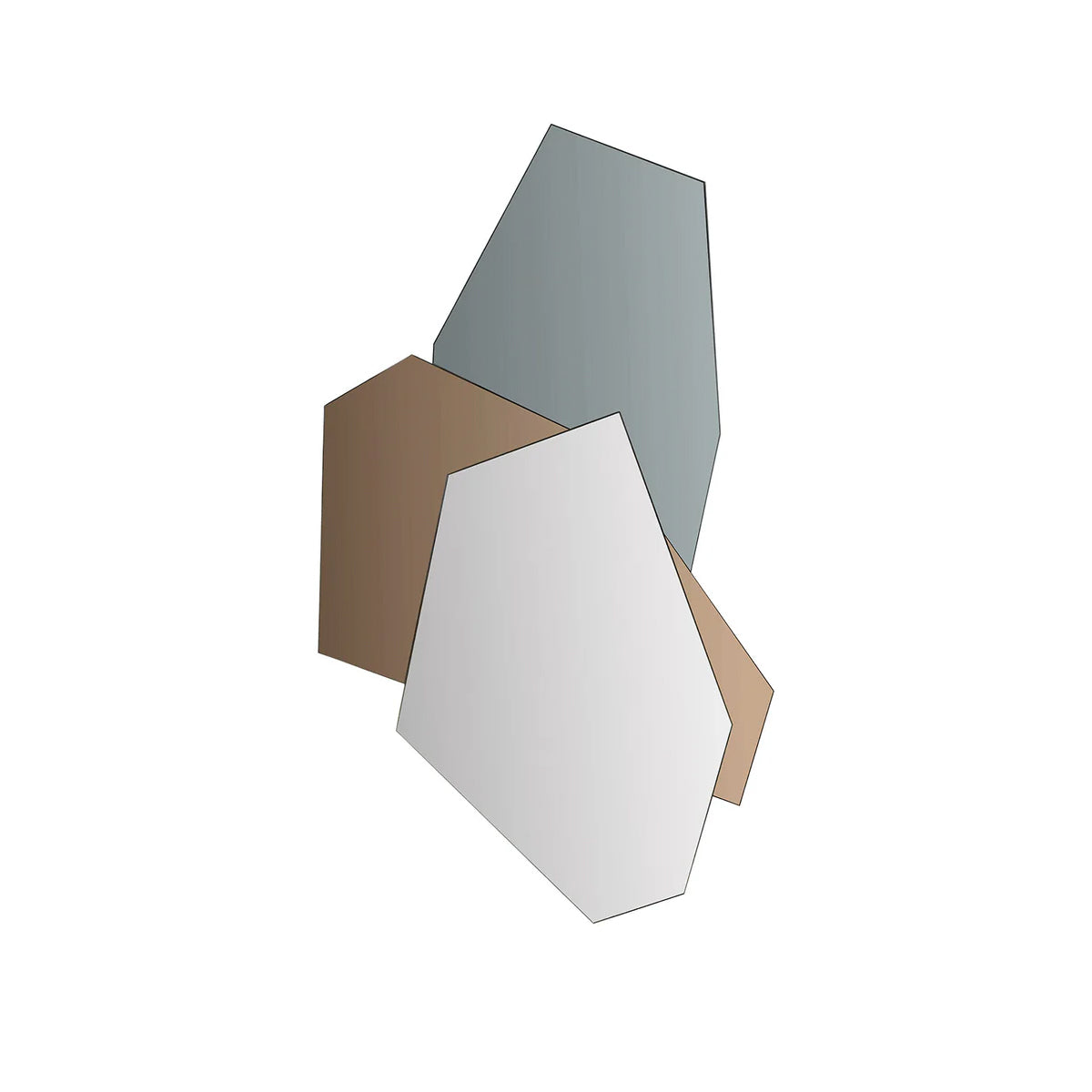 Set de oglinzi decorative conceput ca o compoziție geometrică fixă, alcătuită din trei foi de oglindă cu muchii ascuțite și forme angulare, suprapuse într-o structură precisă, cu caracter arhitectural.