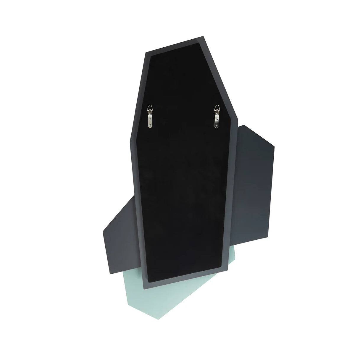 Rama neagră evidențiază liniile ferme și contrastează elegant cu reflexiile oglinzilor, accentuând caracterul contemporan și ușor industrial al piesei.