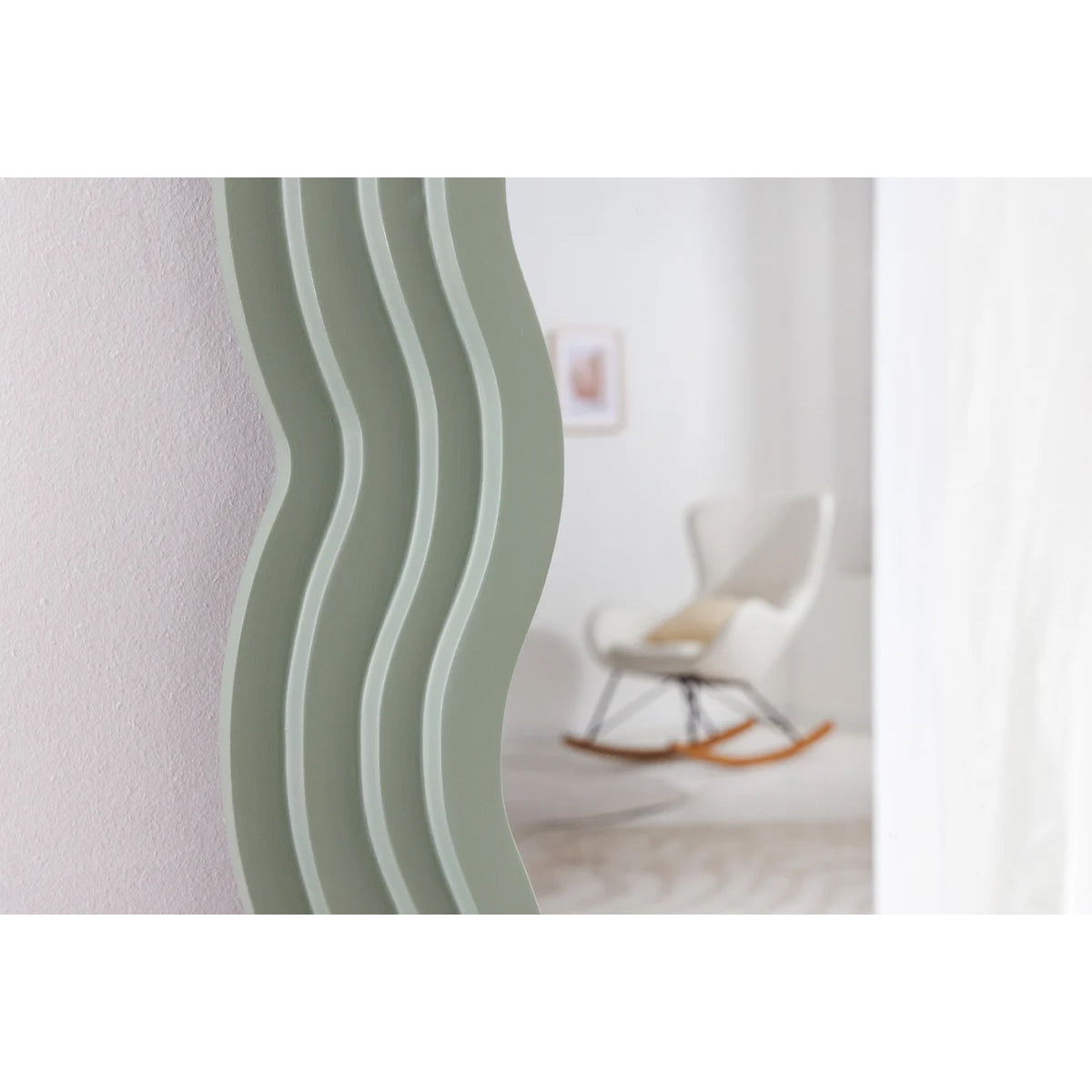 ELVIA Sage impresionează prin echilibrul dintre forma sa organică și tonul verde pal, sofisticat. Oglinda devine astfel un element decorativ subtil, dar cu personalitate.
