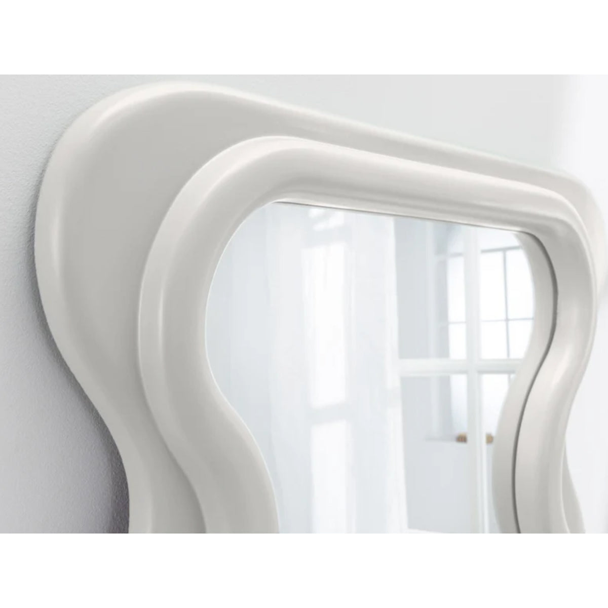 Rama albă mată accentuează forma sculpturală și oferă un contrast rafinat cu lumina naturală.