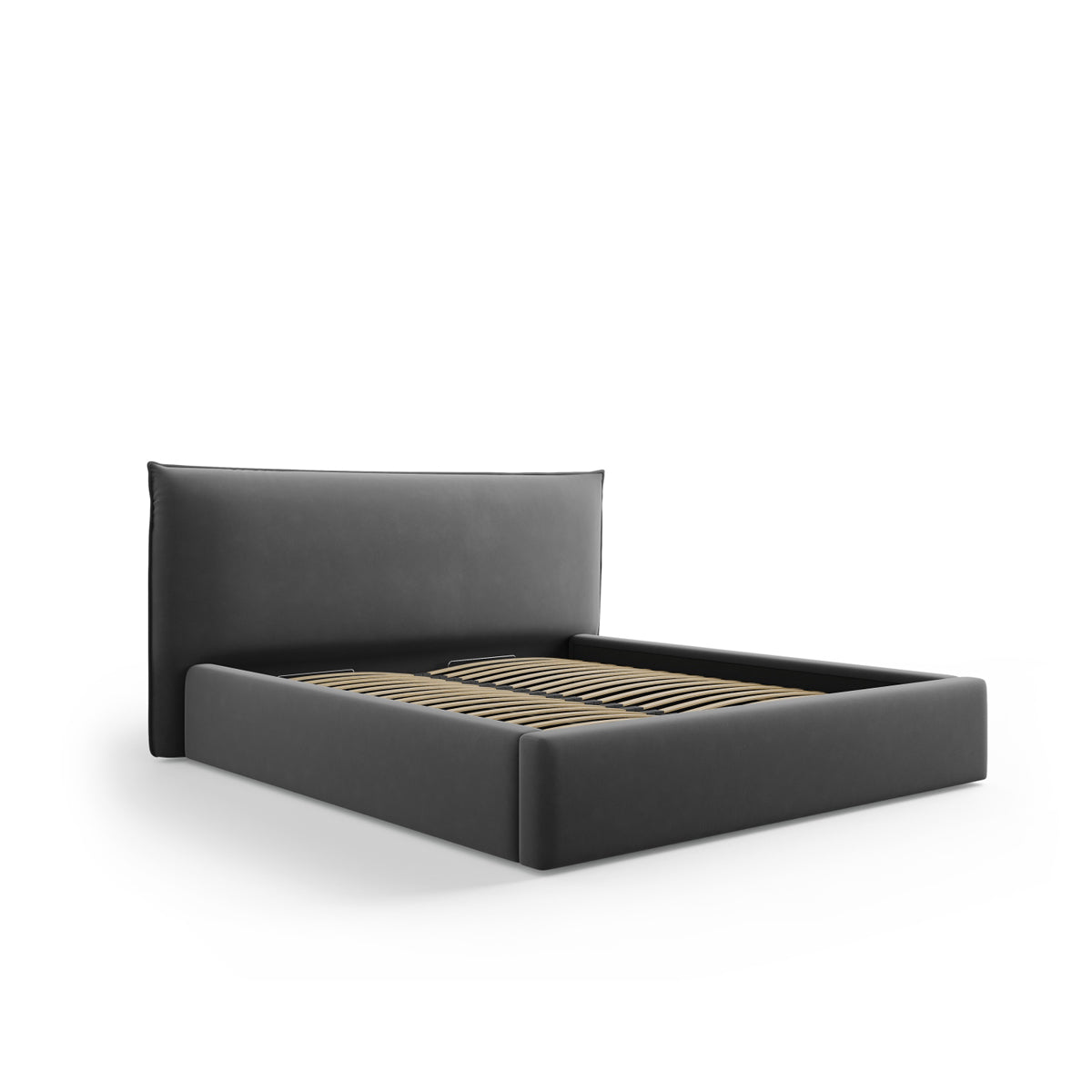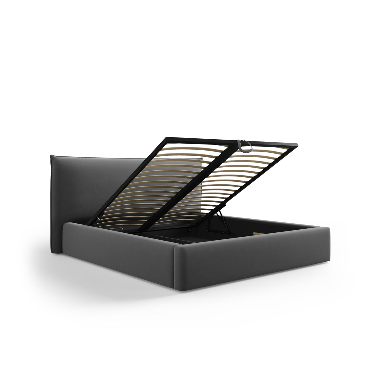 Pat SAVOY L200 în catifea gri închis pentru saltea 160x200 cm