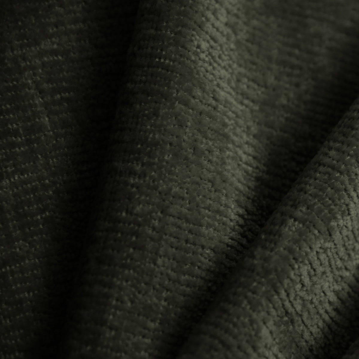 O țesătură de chenilă cu textură moale și densă. Textura sa oferă un aspect estetic și atrăgător, evidențiat de o strălucire subtilă care variază în funcție de unghiul luminii și direcția firelor.