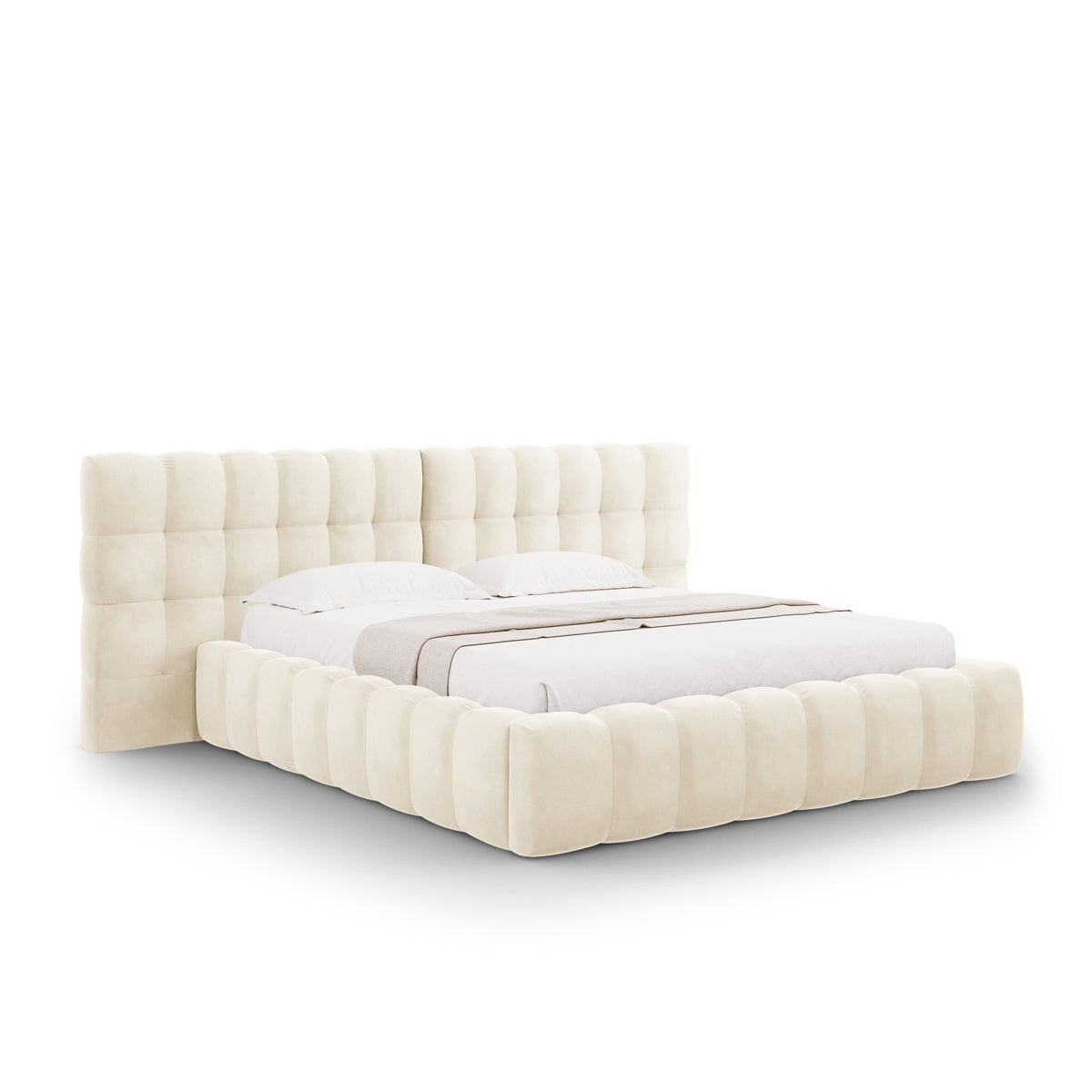 Pat ASTORIA CLASS L250 în catifea bej deschis pentru saltea 160x200 cm