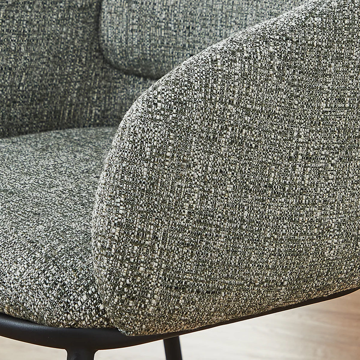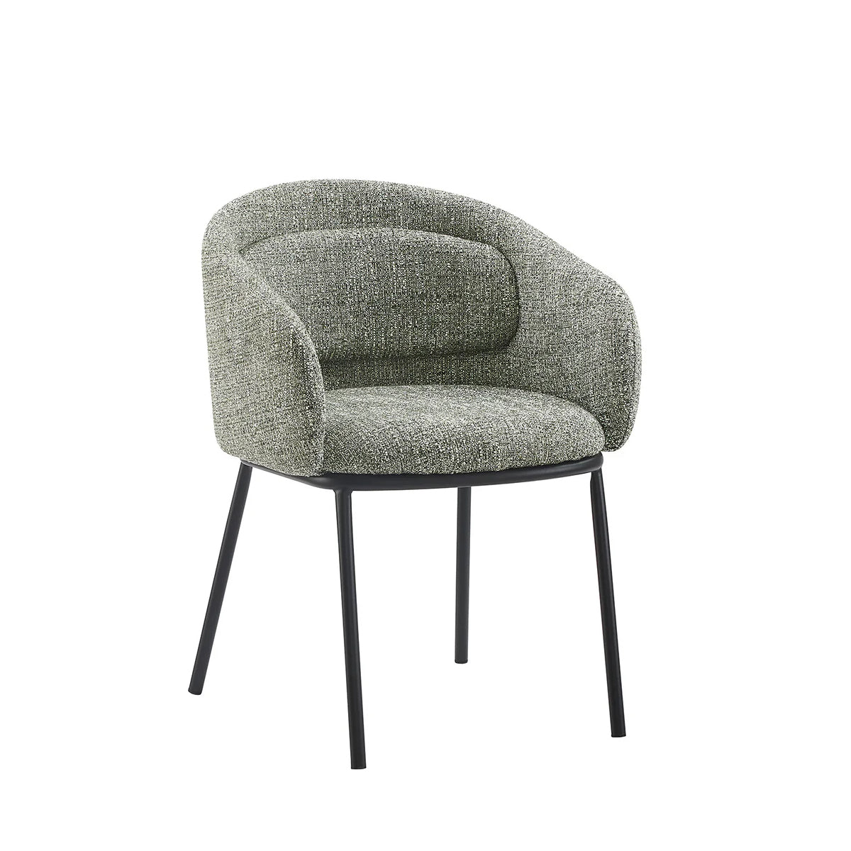 Tapițeria cu textură densă, într-o nuanță calmă de verde-salvie, aduce o notă naturală și relaxantă în dining sau zona de zi.