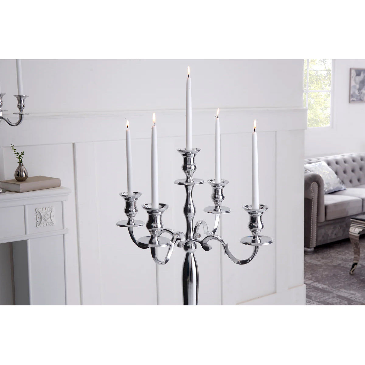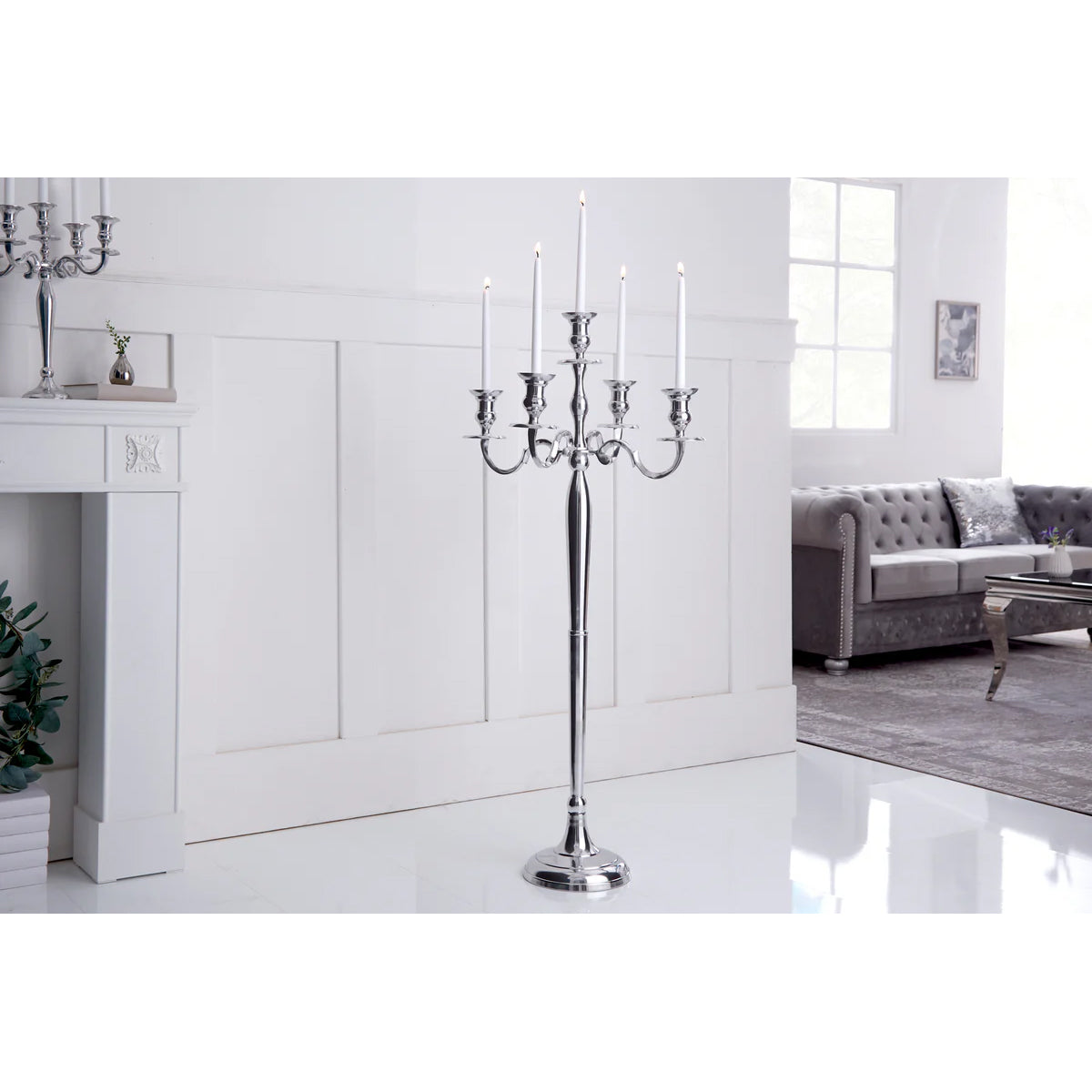 Fabricat din aluminiu de înaltă calitate, finisajul său argintiu elegant adaugă o notă de modernitate, menținând în același timp farmecul neoclasic.