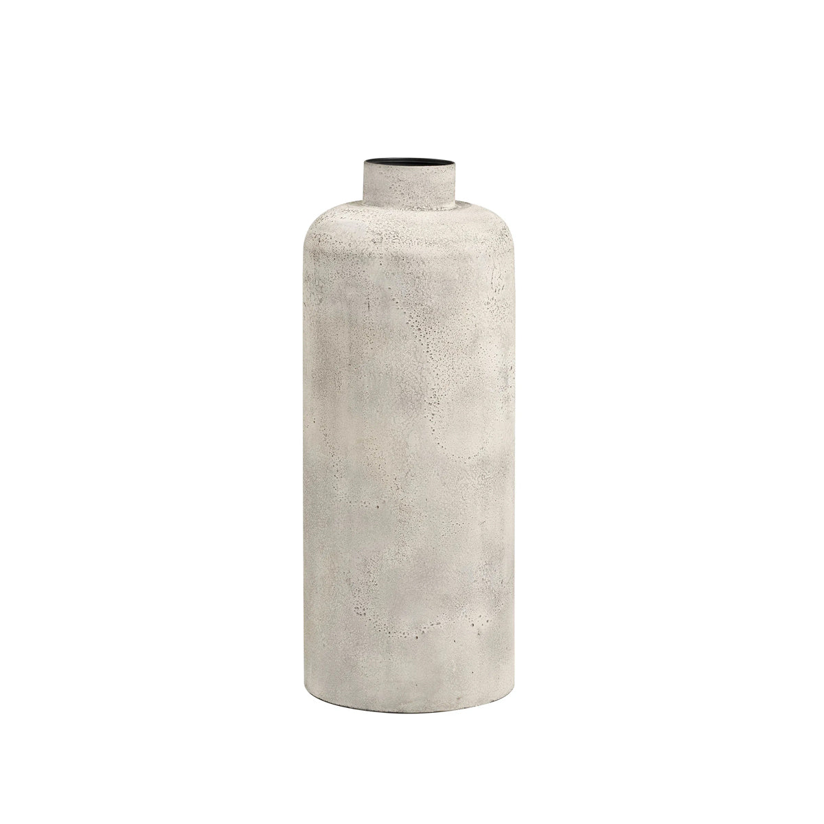 Vas decorativ din metal, cu formă cilindrică și proporții echilibrate. Finisajul antique beige prezintă variații subtile de ton și textură, care oferă suprafeței un aspect ușor patinat. Datorită înălțimii medii și diametrului compact, poate fi utilizat atât pentru aranjamente florale, cât și ca obiect decorativ de sine stătător, potrivit pentru living, hol sau spații comerciale cu estetică contemporană.