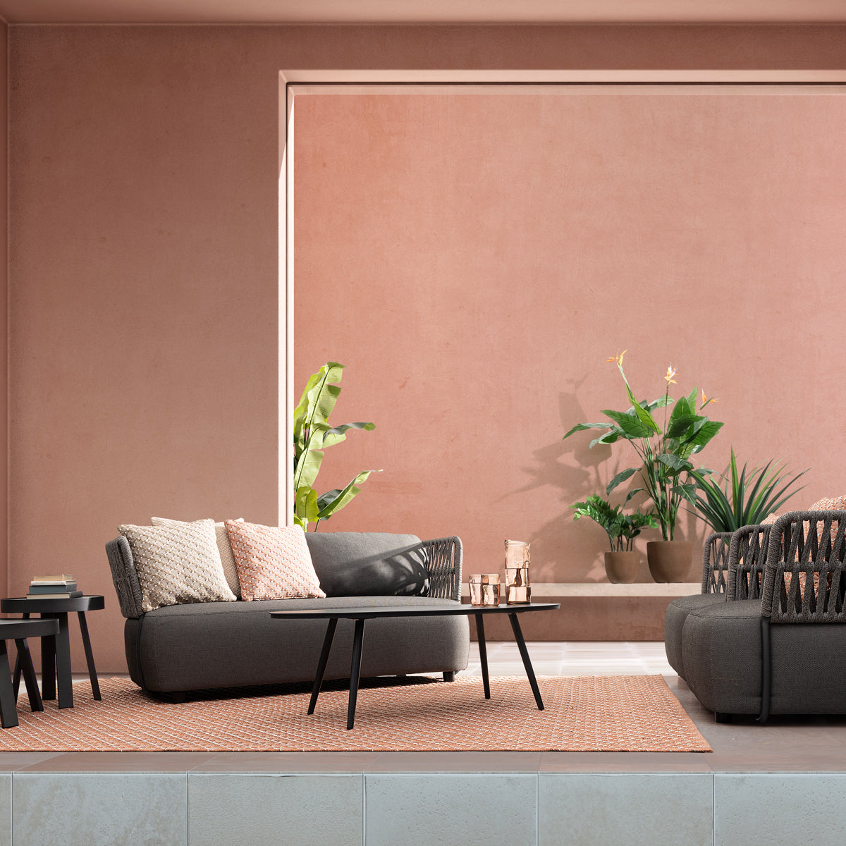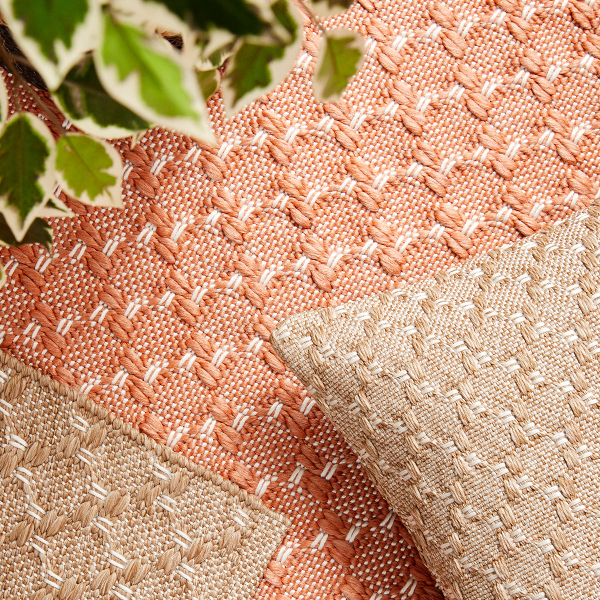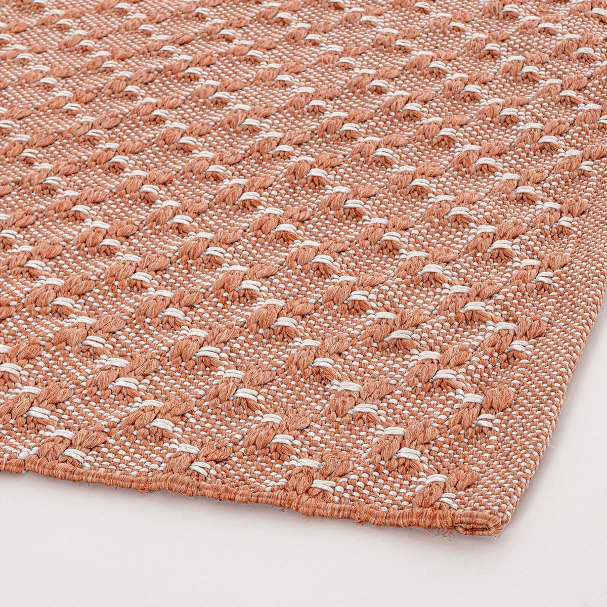 Covor pentru exterior ţesut manual în două culori roşu caramiziu si alb.