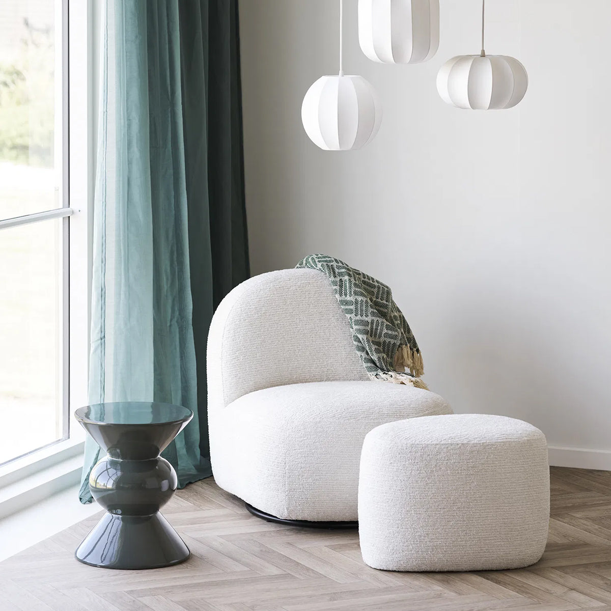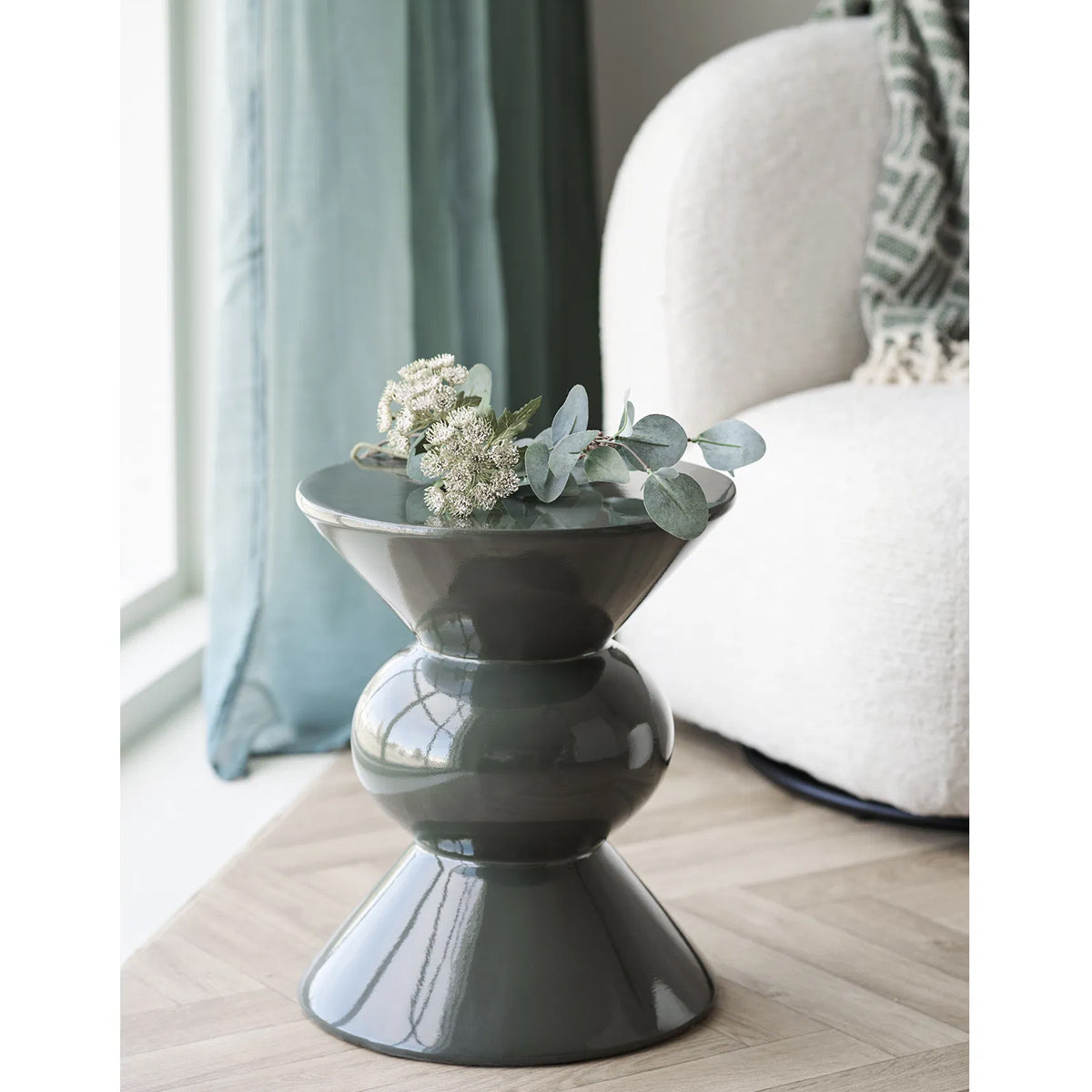 Măsuţă auxiliară rotundă din fibră de sticlă.